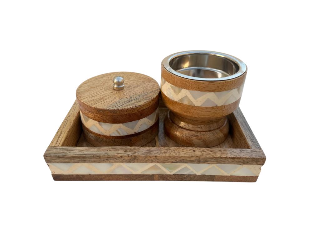 طقم مبخرة خشبي فاخر، بزخرف صدفية رائعة ومتقنة، بصناعة هندية ذات جودة عالية، تحوي على مبخرة خشبية، وكذلك صندوق للبخور ..
